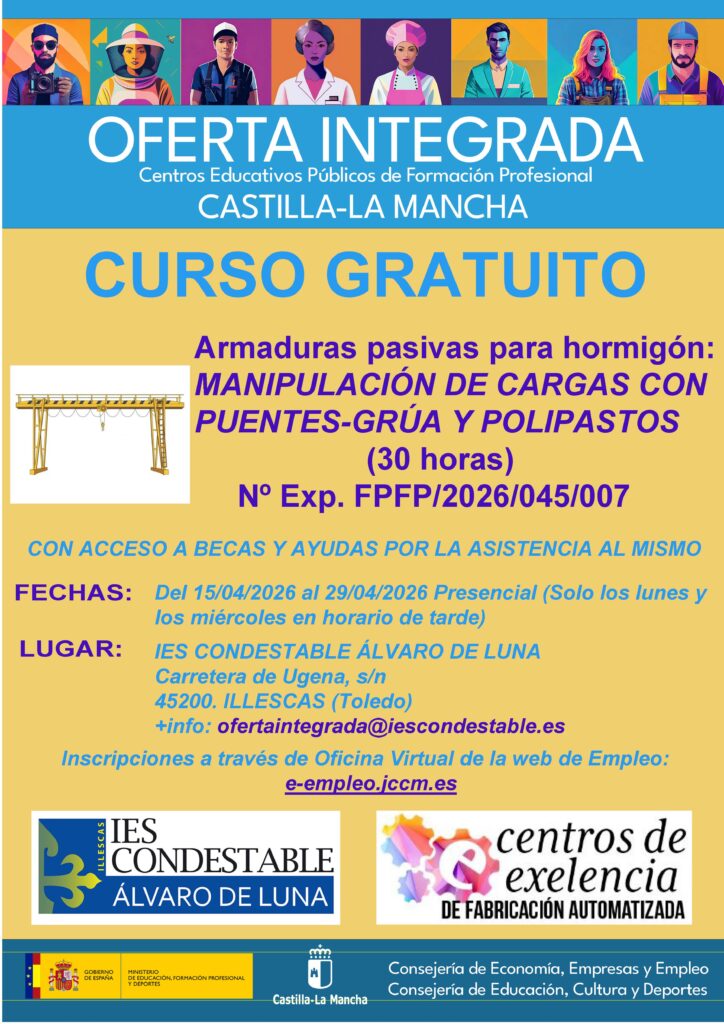 El curso a impartir es de: Armaduras pasivas para hormigón: MANIPULACIÓN DE CARGAS CON PUENTES-GRÚA Y POLIPASTOS.