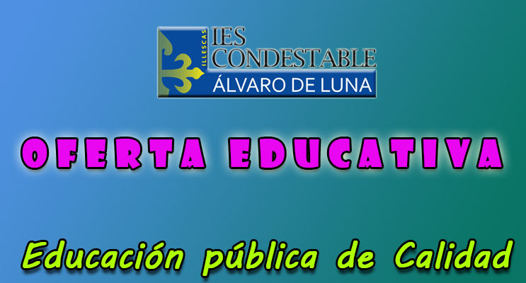 Os presentamos en PDF la OFERTA EDUCATIVA del IES Condestable Álvaro de Luna. Puede ampliar información sobre algunas de las materias optativas AQUI.